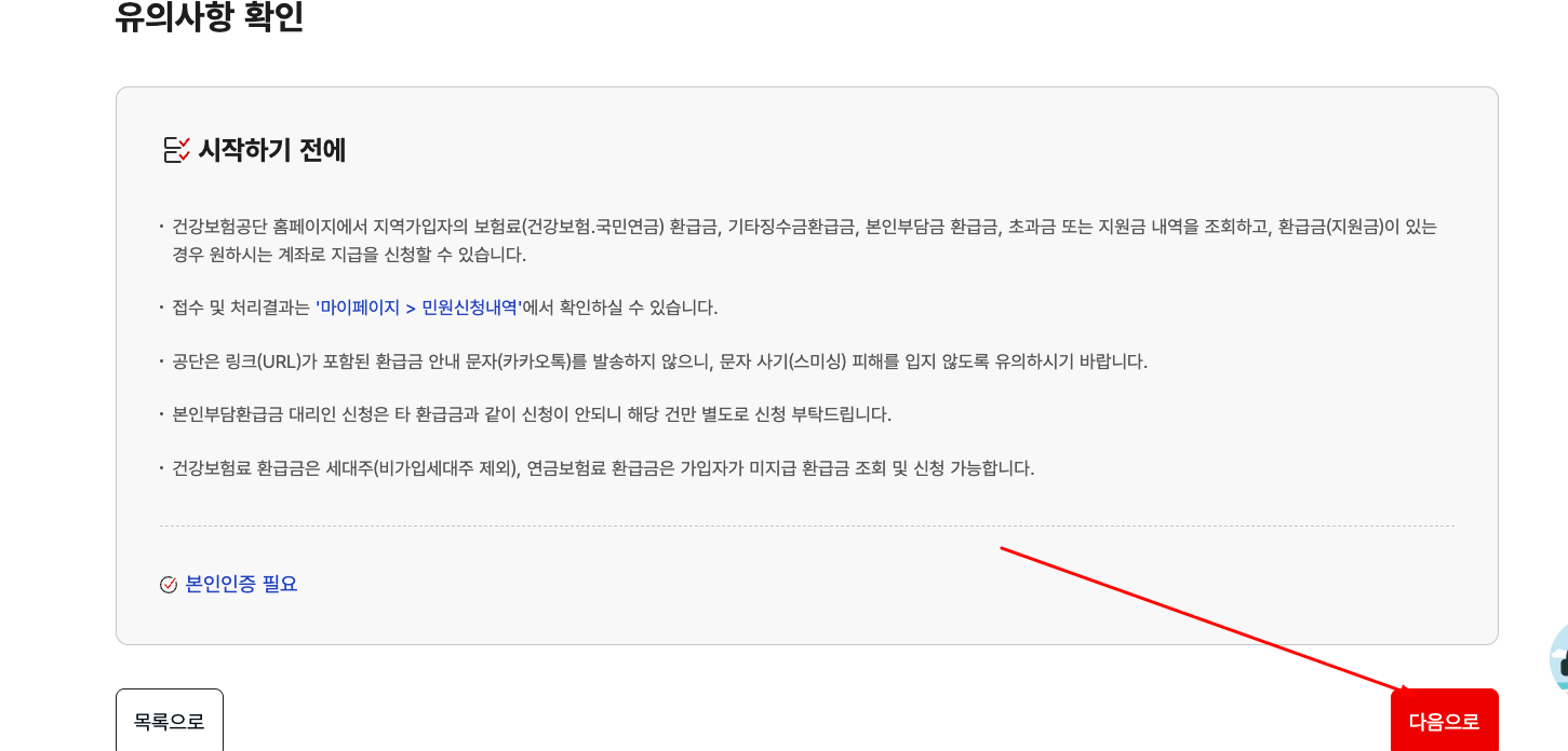 - 유의사항 확인 후