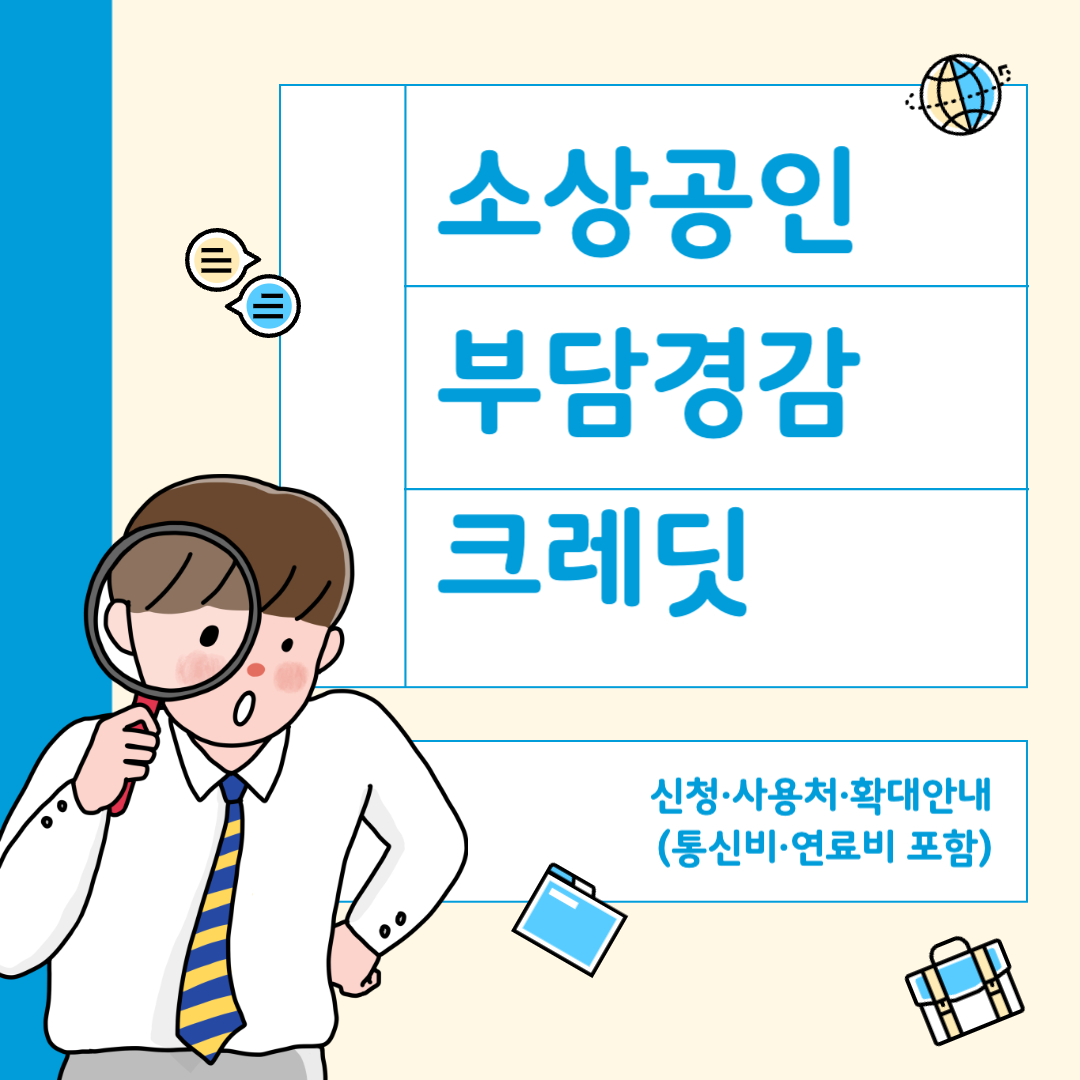 - 신청처: 부담경감크레딧 홈페이지 또는 소상공인 지원 시스템(신청 페이지에 개인정보 및 사업자 정보 입력)